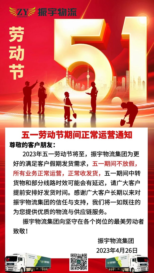 振宇物流集團(tuán)丨五一期間正常運(yùn)營通知