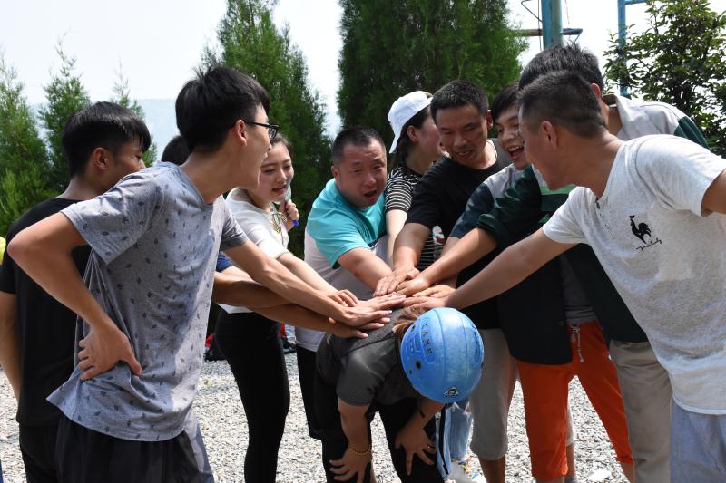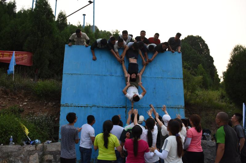 在訓(xùn)練過程中,全體員工被分為三支隊(duì)伍并展開了激烈的競(jìng)爭(zhēng),8米的高空斷橋,真正的個(gè)人挑戰(zhàn),敢于挑戰(zhàn)便是對(duì)自己的一大突破,只有勇 于不斷的去突破自己,才能在工作、生活中有所成長(zhǎng),有所改變;所有學(xué)員站在1.5高的背摔臺(tái)上背對(duì)著大家,身體筆直的倒下,由下面的伙 伴將其接住。面對(duì)這個(gè)挑戰(zhàn),敢不敢將自己的后背交給隊(duì)友?敢不敢充分的相信隊(duì)友?如何去建立信任……通過訓(xùn)練活動(dòng)讓員工們體驗(yàn)到解 決問題的方法,員工們之間面對(duì)同樣一個(gè)問題所表現(xiàn)出來的態(tài)度,如何達(dá)到共識(shí),并進(jìn)行配合共同解決。最終大家齊心協(xié)力在規(guī)定時(shí)間內(nèi)完 成了超音速、背摔、斷橋、有軌電車、求生墻等眾多項(xiàng)目。