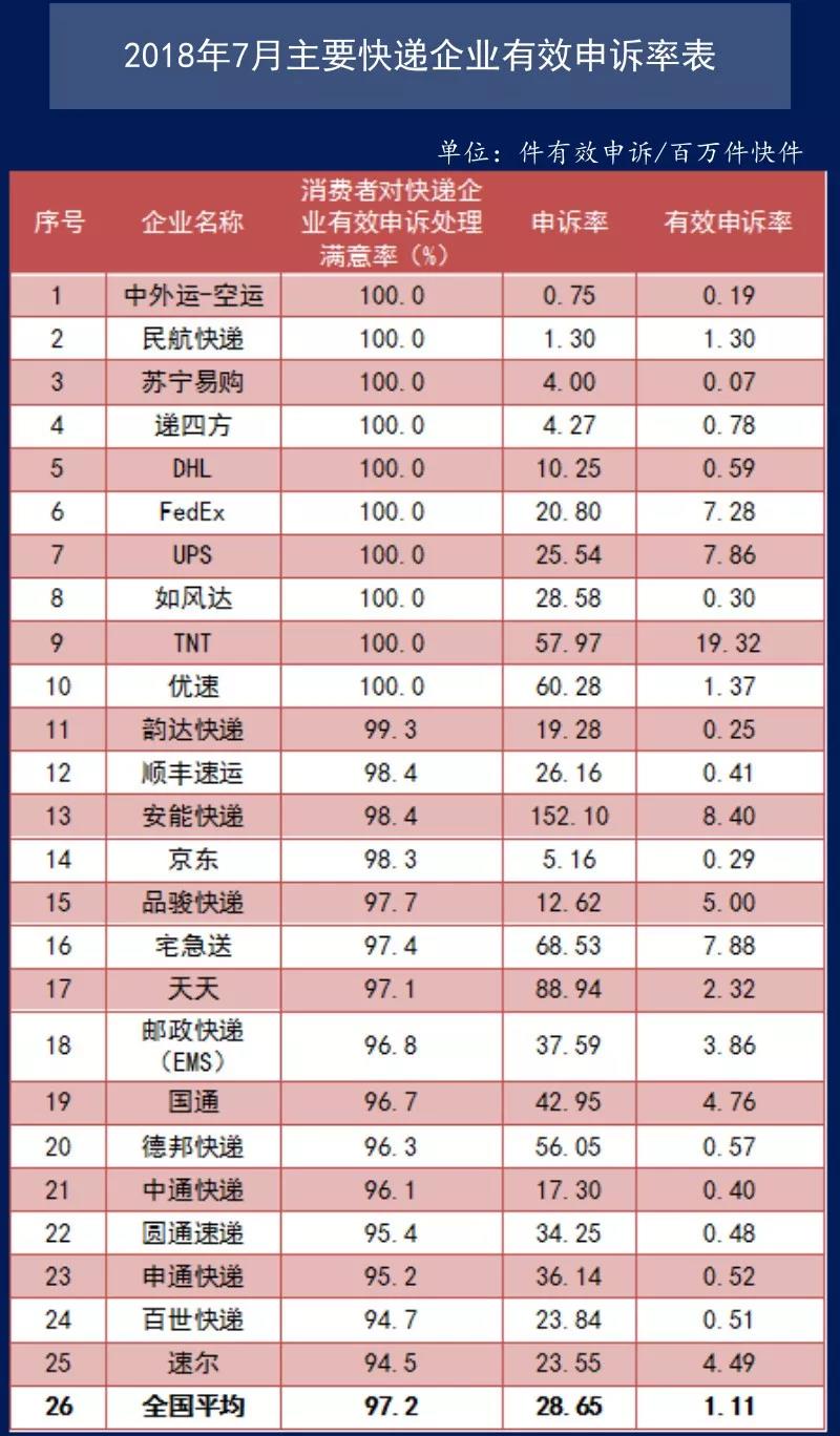 8月23日,國家郵政局發(fā)布《2018年7月消費者對郵政服務問題申訴情況統(tǒng)計表》。