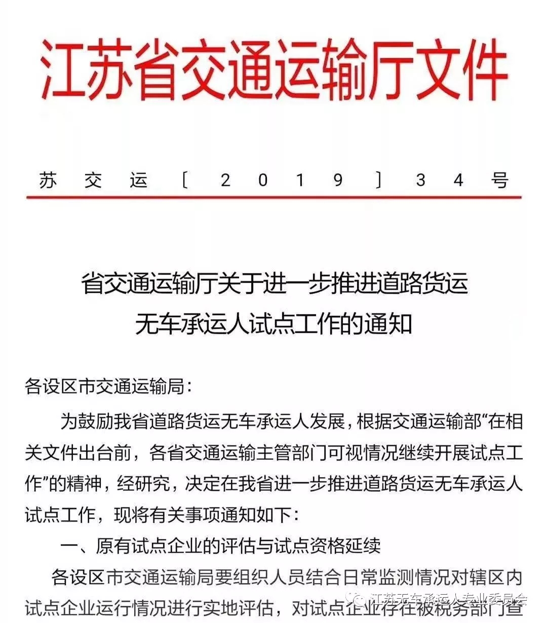 濟(jì)南物流公司:重磅!關(guān)于無車承運(yùn)試點(diǎn) 江蘇省交通廳發(fā)文