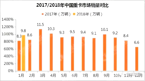 據(jù)統(tǒng)計(jì)數(shù)據(jù)顯示,自2016年10月開(kāi)始延續(xù)至2017年10月,國(guó)內(nèi)重卡市場(chǎng)連續(xù)13個(gè)月爆發(fā)式增長(zhǎng)!2017年全年,國(guó)內(nèi)重型貨車(chē)產(chǎn)量為114.97萬(wàn)輛,同比增長(zhǎng)55.07%,銷(xiāo)量為111.69萬(wàn)輛,同比增長(zhǎng)52.38%。而18年1月重卡市場(chǎng)的“開(kāi)門(mén)紅”除了同環(huán)比雙雙增長(zhǎng)以外,同時(shí)也打破了去年1月銷(xiāo)量8.3萬(wàn)輛的紀(jì)錄。